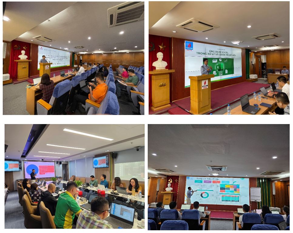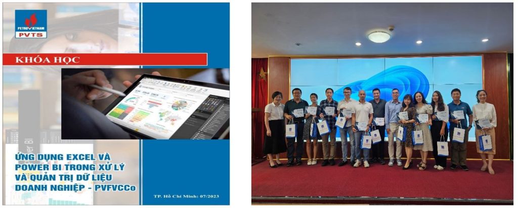 Với đối tượng học là các CBCNV thuộc Ban Kinh doanh, Ban Tiếp thị Truyền thông của PVFCCo, Công ty PVTS đã xây dựng, thiết kế khóa học “Ứng dụng Excel, Power BI trong xử lý và quản trị dữ liệu doanh nghiệp” theo hướng thực hành từng bước từ cơ bản đến nâng cao, kết hợp công cụ và tư duy giúp cho học viên có thể chủ động tạo các báo cáo phục vụ công việc tại PVFCCo. Thời lượng khóa học 66 giờ với nội dung học từ dữ liệu và tổ chức dữ liệu, công cụ excel nâng cao trong xử lý dữ liệu và tạo báo cáo và trực quan hóa dữ liệu bằng Power BI đã giúp cho học viên ứng dụng kiến thức excel từ cơ bản đến nâng cao để gia tăng hiệu quả công việc thông qua việc biết tạo các cấu trúc dữ liệu, xử lý dữ liệu và đặc biệt biết cách chuẩn hóa được dữ liệu gốc, quản lý và bảo mật dữ liệu của cá nhân và tổ chức, tạo các báo cáo ad – hoc, đáp ứng được nhu cầu thay đổi thường xuyên các dạng báo cáo, dữ liệu của các cấp quản lý.